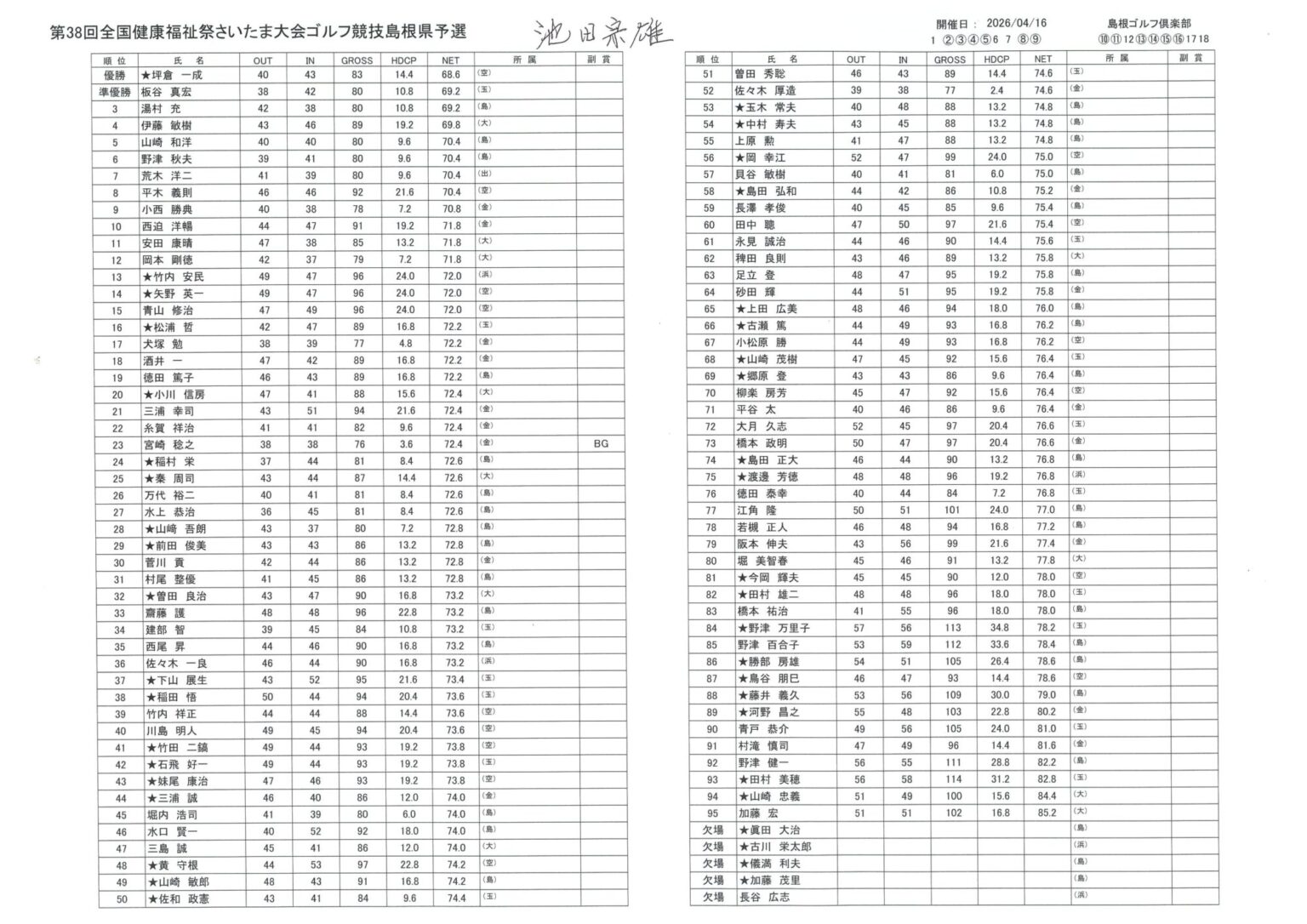 3. 第38回全国健康福祉祭さいたま大会ゴルフ競技島根県予選 結果